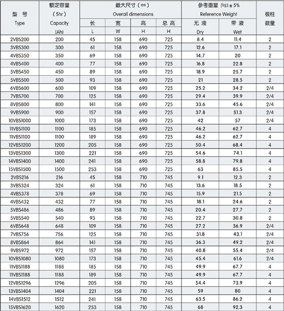 主要用途:為替代進口,本公司研制了符合英國BS標準要求的VBS系列牽引用鉛酸蓄電池,為國內進口電動叉車和電動牽引車配套,也可用于其他電動牽引車輛,本產口還可用于出口。